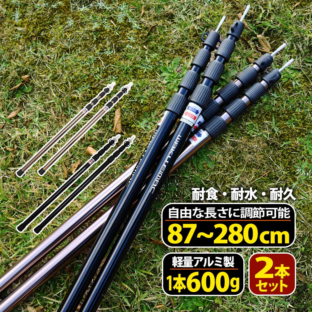 wakufimac アウトドア タープ テント ポール 伸縮 2本セット ブラック / ブロンズ アルミ 87cm〜280cm 調整 ワンポール ヘキサ レクタ サブポール タープポール
