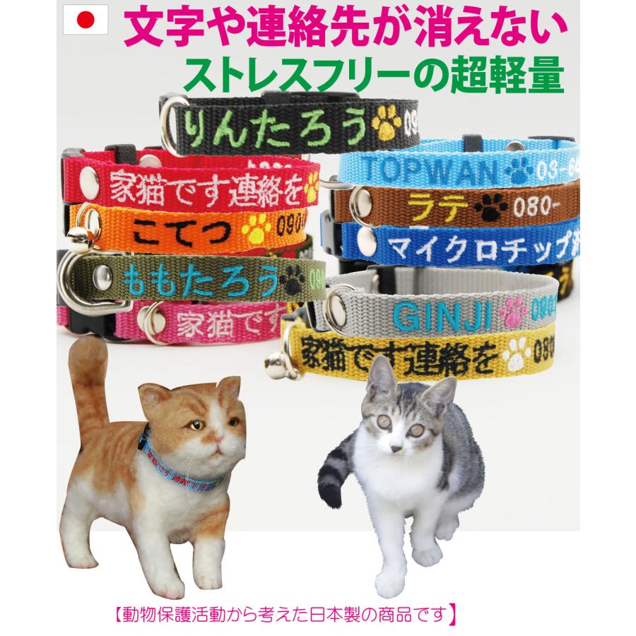 迷子札 猫 軽量 刺繍首輪 猫用迷子札 ネームタグ 猫首輪 名入れ 電話番号 おしゃれ 災害 TOPWAN 消えない連絡先 名前 名前入り 首輪 マイクロチップ 日本製