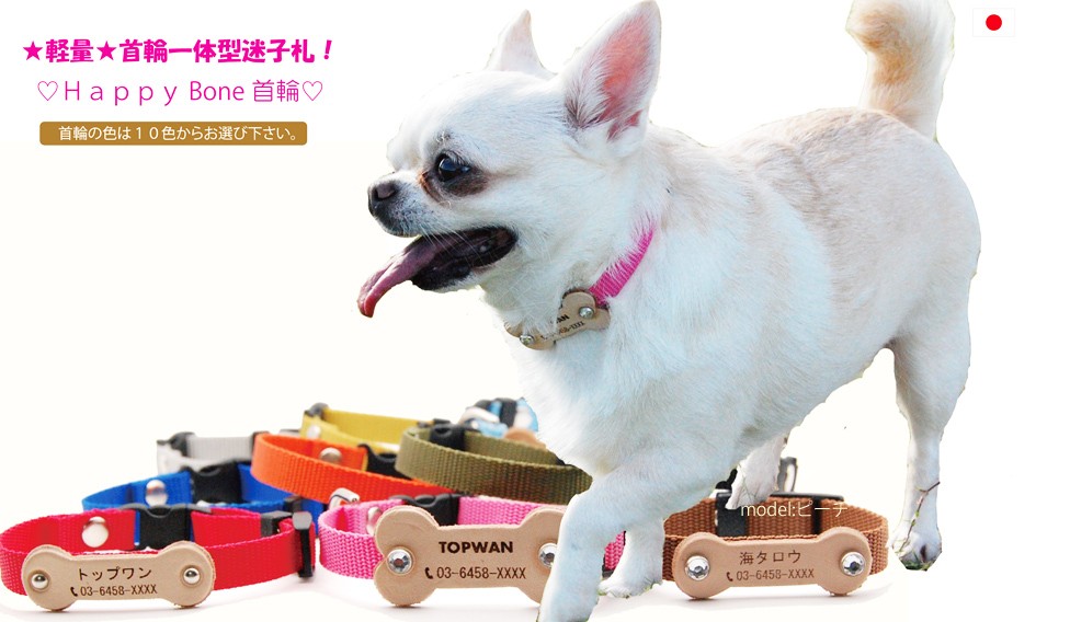 犬 迷子札 首輪 軽量 Sサイズ 日本製 HappyBone首輪 TOPWAN 小型犬 犬用迷子札 名札 IDタグ 名前入 名前入り 首輪 名入れ かわいい おしゃれ 迷子防止