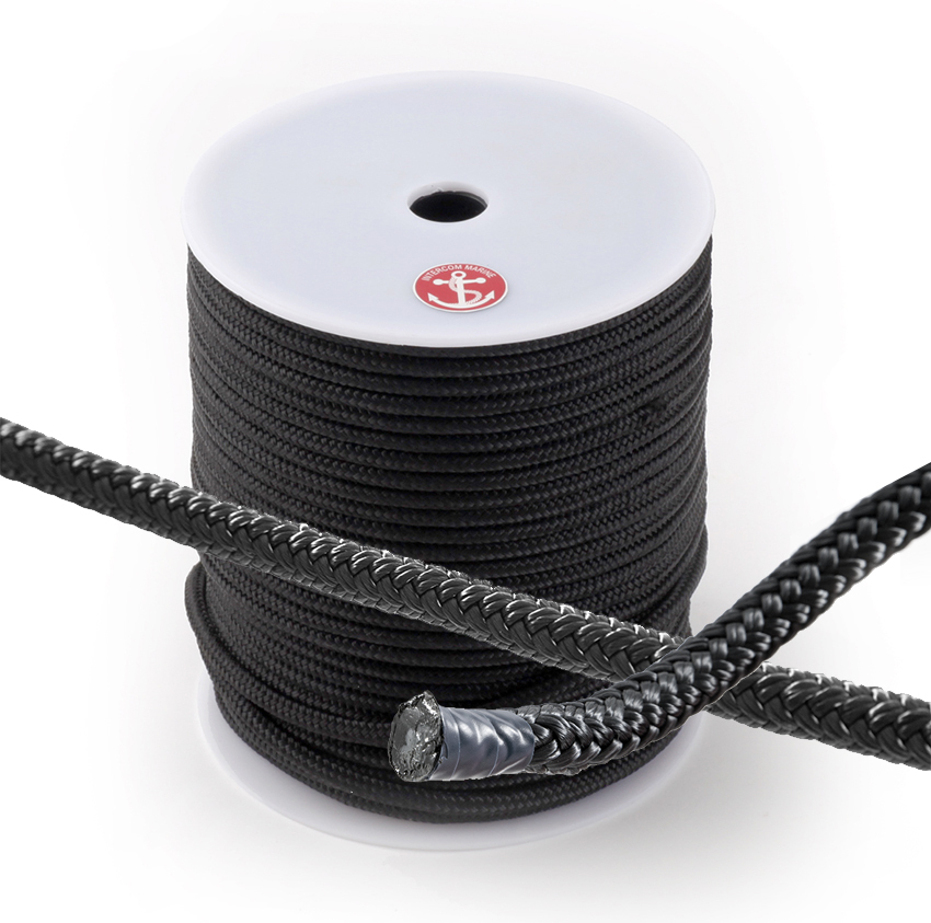 マルチフィラメント高強度ポリエステル素材を使用。16打ちの編み込みロープを内芯と外皮の特殊な2重構造で製造されたダブルブレイドロープでドッグラインとして定番&人気のブラックカラー。繊維の強さを効率よく引きだし、高強度と耐久性をもつダブルブレイドロープに仕上げています。
