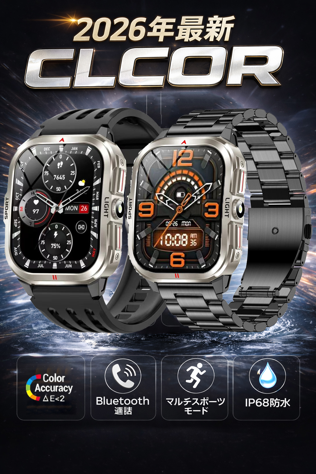 | 機能 | 心拍計、睡眠モニター、座りがち、多機能健康管理、着信通知、活動量計・運動追跡、カメラ遠隔操作、アラーム、天気予報、… |