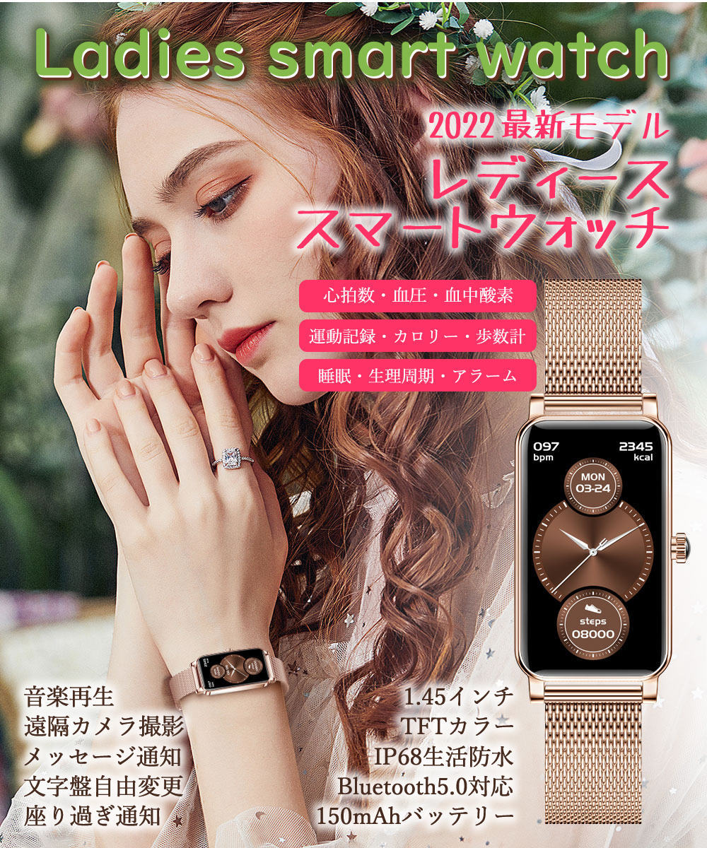 スマートウォッチ レディース 防水 女性 フルタッチスクリーン 心拍数 Line着信電話通知 iphone&Android対応 日本語説明書 /彼女/母の贈り物