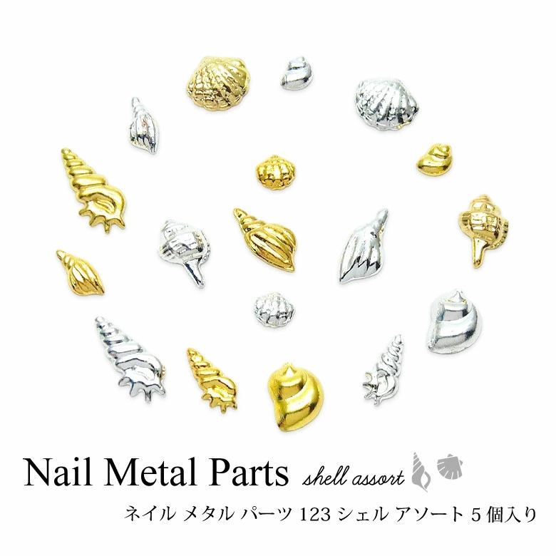 ネイル メタル パーツ シェル アソート 5個入り 123