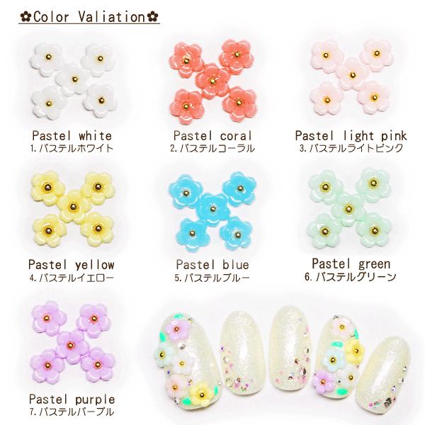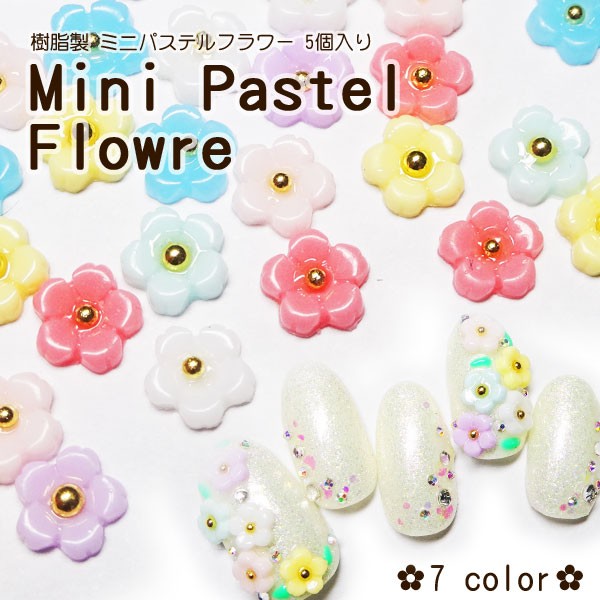 樹脂製 ミニパステルフラワー 全7色 5個入
