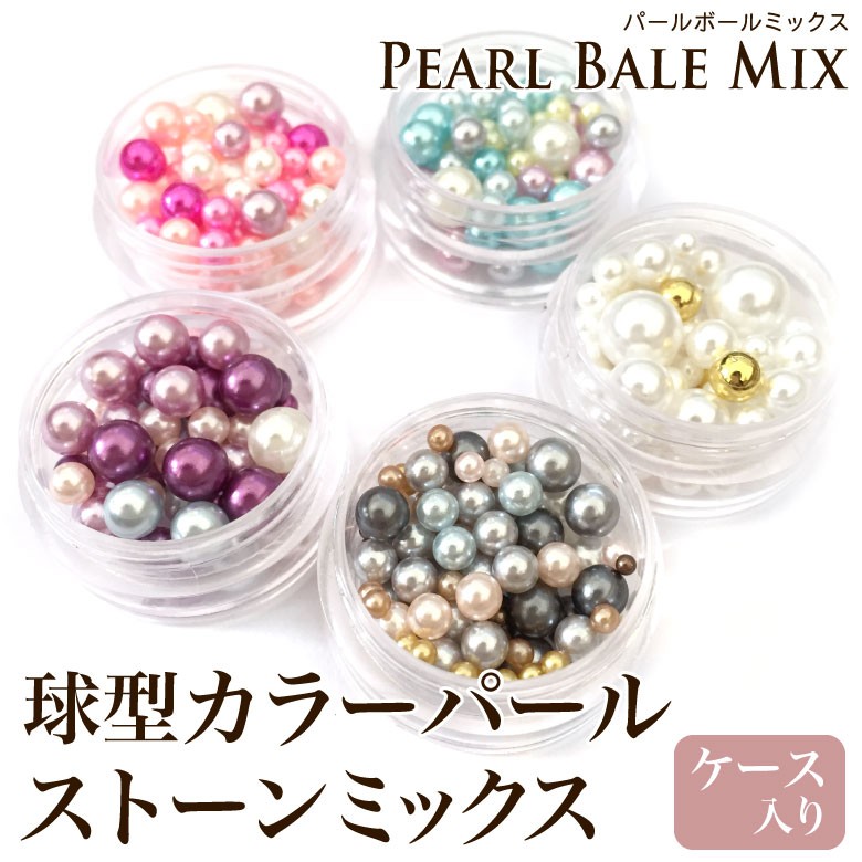 パール 穴なし 球型カラーパールストーンミックス ケース入り