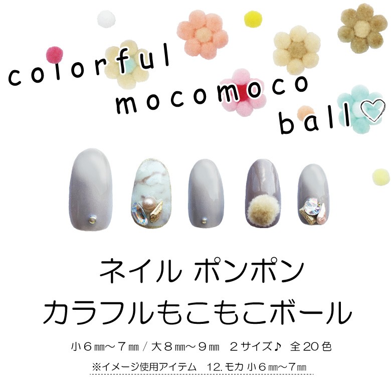 ネイル ポンポン カラフル もこもこボール 各種20個入り