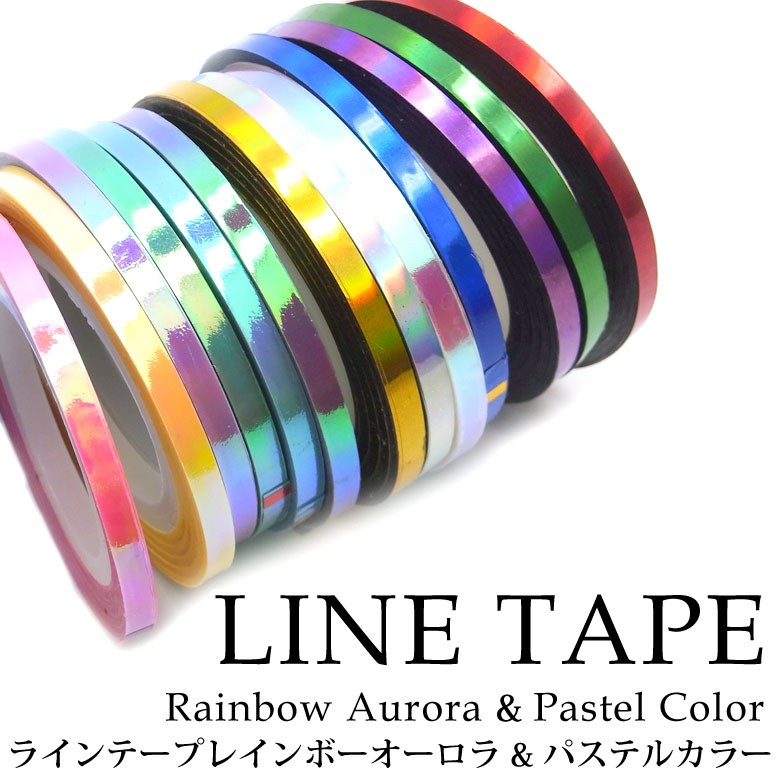 ラインテープ レインボーオーロラ & パステルカラー 全13種 3サイズ
