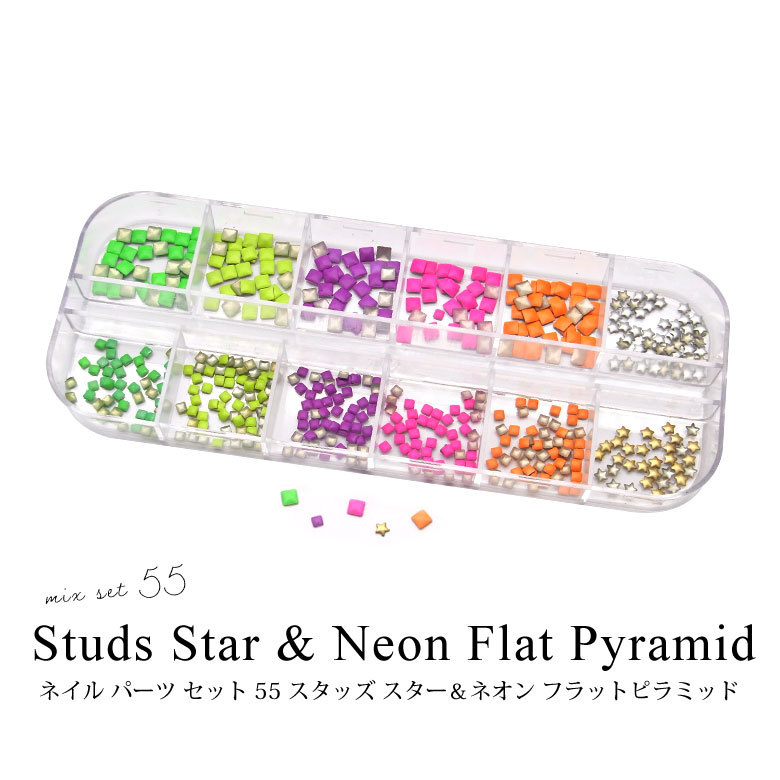 ネイル パーツ セット 55 スタッズ スター & ネオン フラットピラミッド