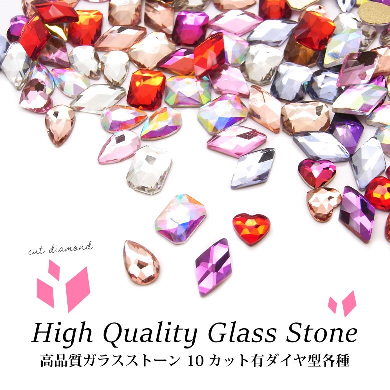 高品質ガラスストーン 14 フラットダイヤ型 各種 10個入り