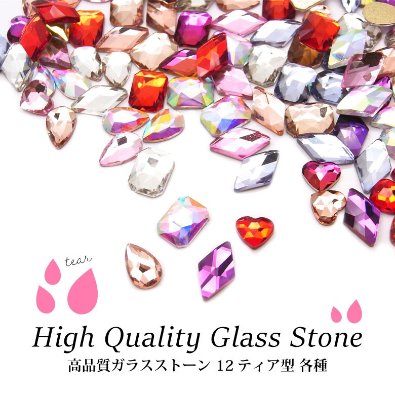 高品質ガラスストーン 12 ティア型 各種 5個入り
