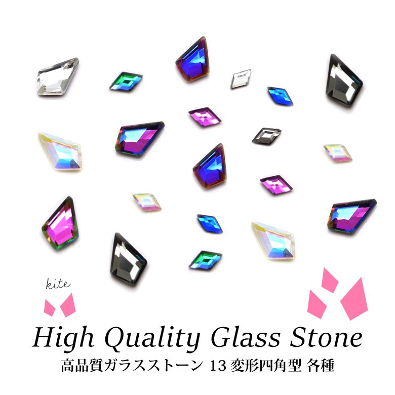 高品質ガラスストーン 13 変形四角型 各種 5個入り