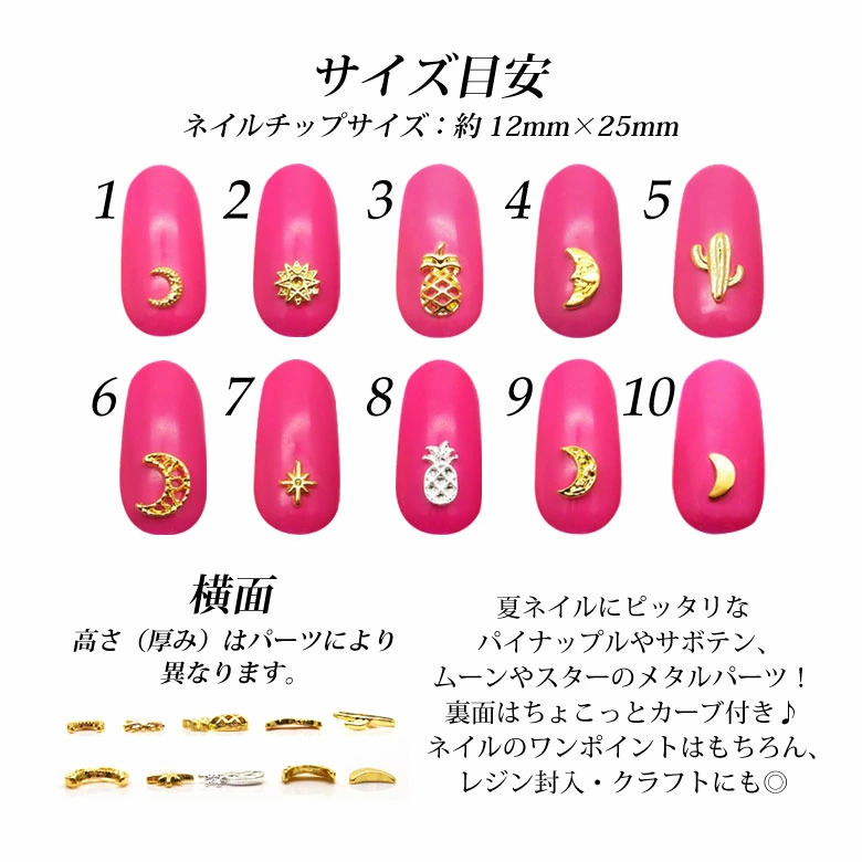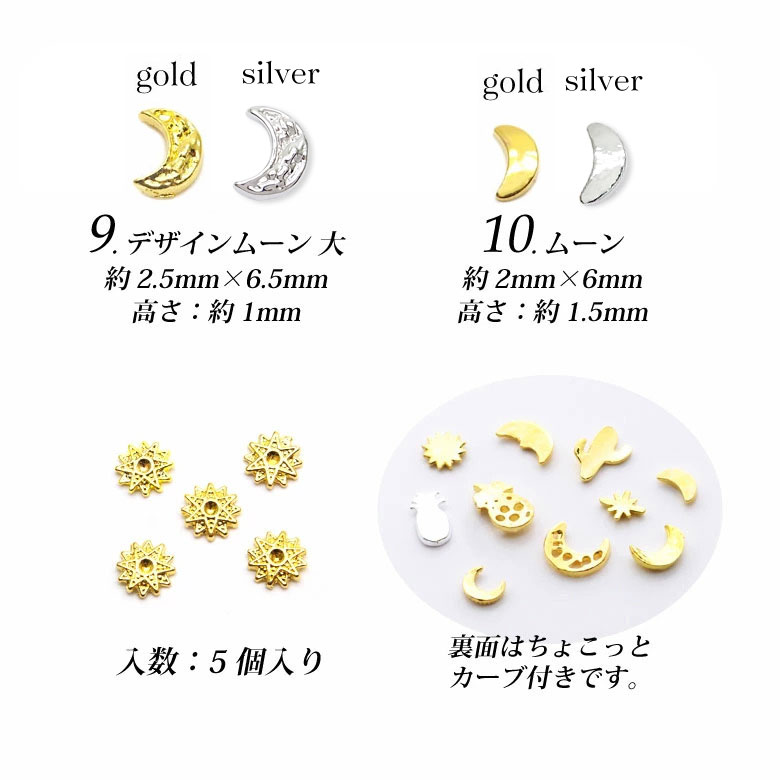 ネイル メタルパーツ 25 夏ネイル ムーン 5個入り