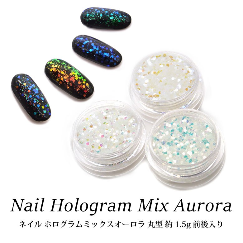 ネイル ホログラム ミックス オーロラ 丸型 ケース入り 各種 約1.5g前後入り