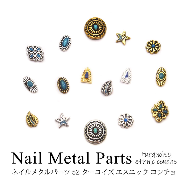 ネイル メタル パーツ 52 ターコイズ エスニック コンチョ 各種 5個入り