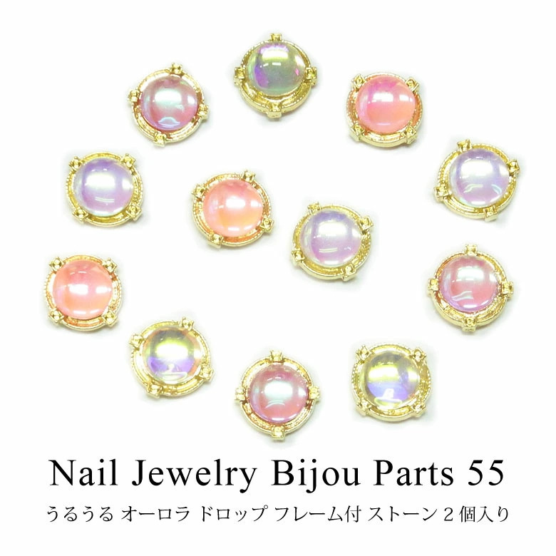 ネイル ジュエリー ビジュー パーツ 55 うるうる オーロラ ドロップ フレーム付 ストーン 2個入り