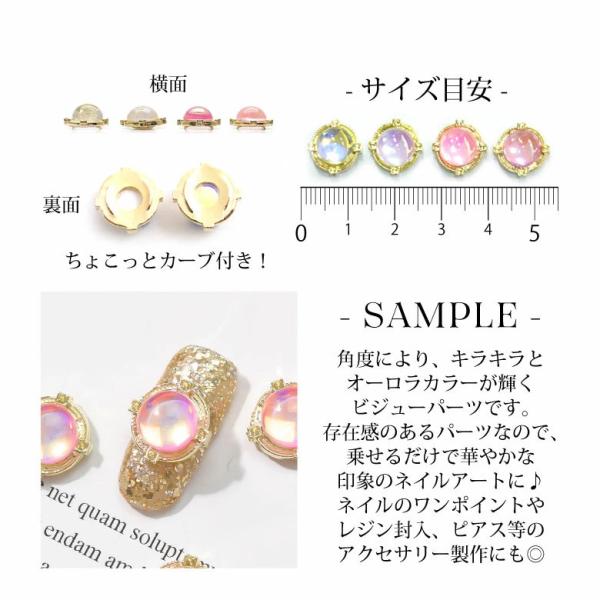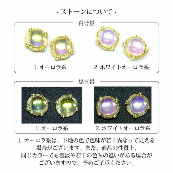 角度により、キラキラとオーロラカラーが輝くビジューパーツです。