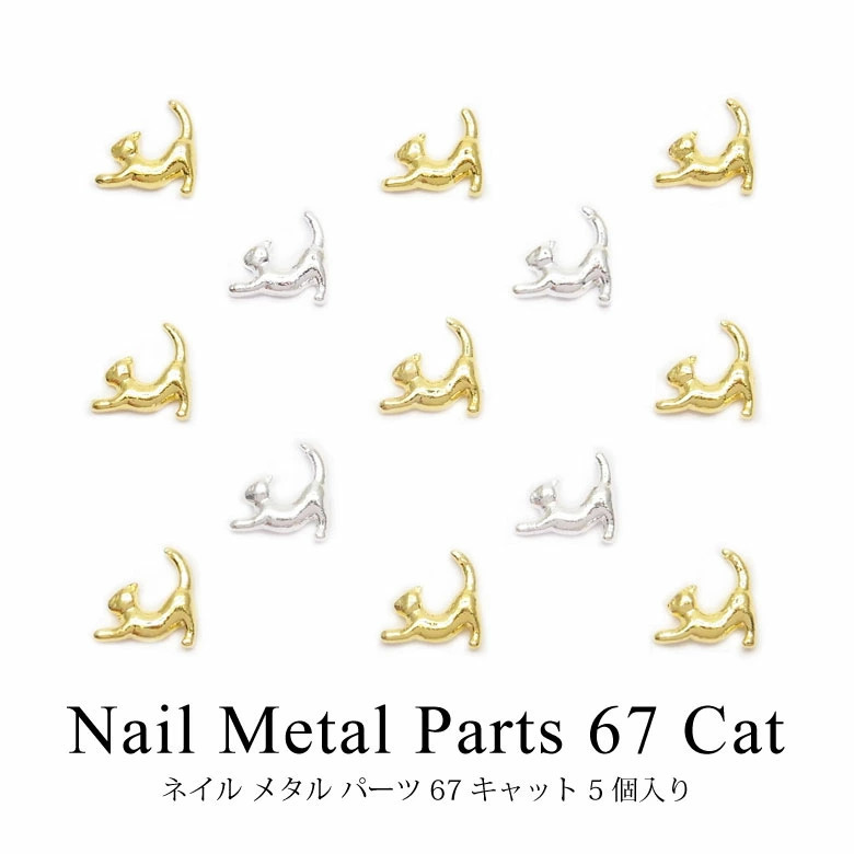 ネイル メタル パーツ 67 伸び 猫 5個入り