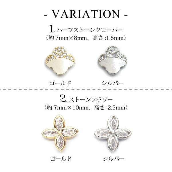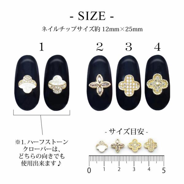 1.ハーフストーンクローバー…約7mm×8mm、高さ:1.5mm