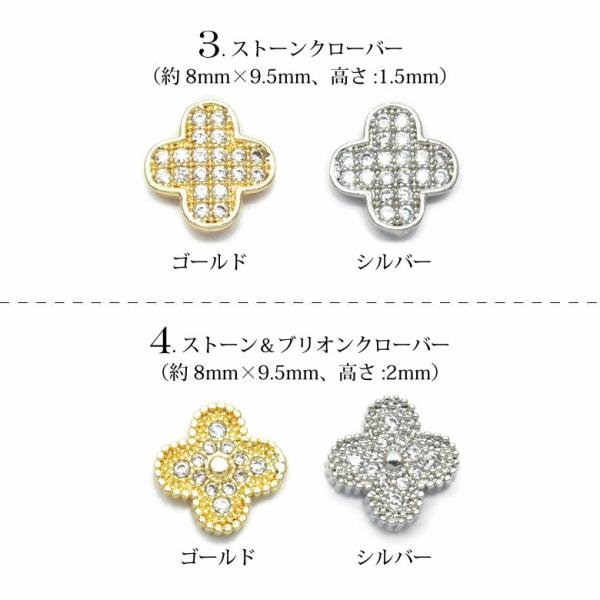4.ストーン&ブリオンクローバー…約8mm×9.5mm、高さ:2mm