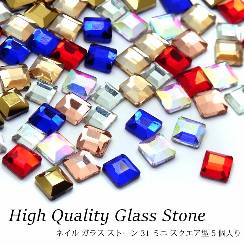 ネイル ガラス ストーン 31 ミニ スクエア型 5個入り