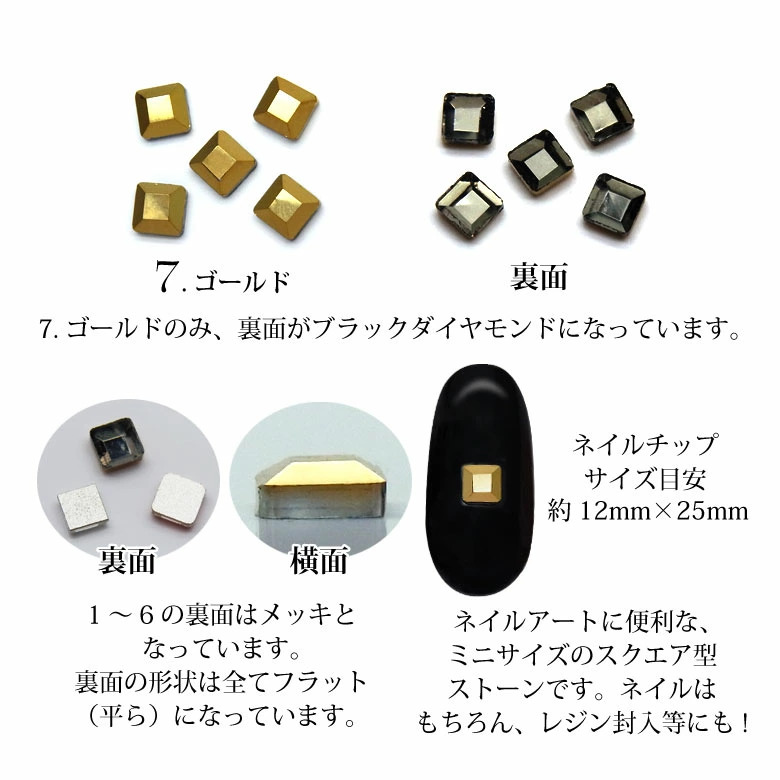 ネイルアートに便利な、ミニサイズのスクエア型ストーンです。