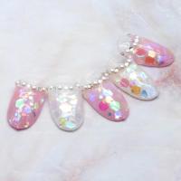 クリアオーロラカラーの大小様々な六角ホログラムと細かいラメグリッターのミックスホログラム♪