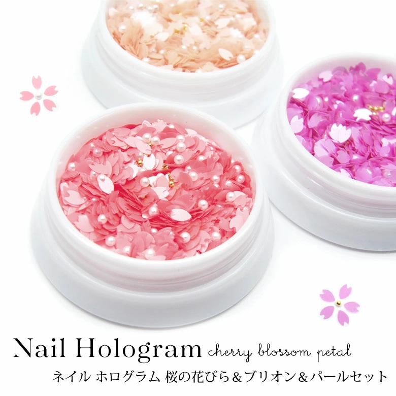 ネイル ホログラム 桜の花びら & ブリオン & パール セット ケース入り