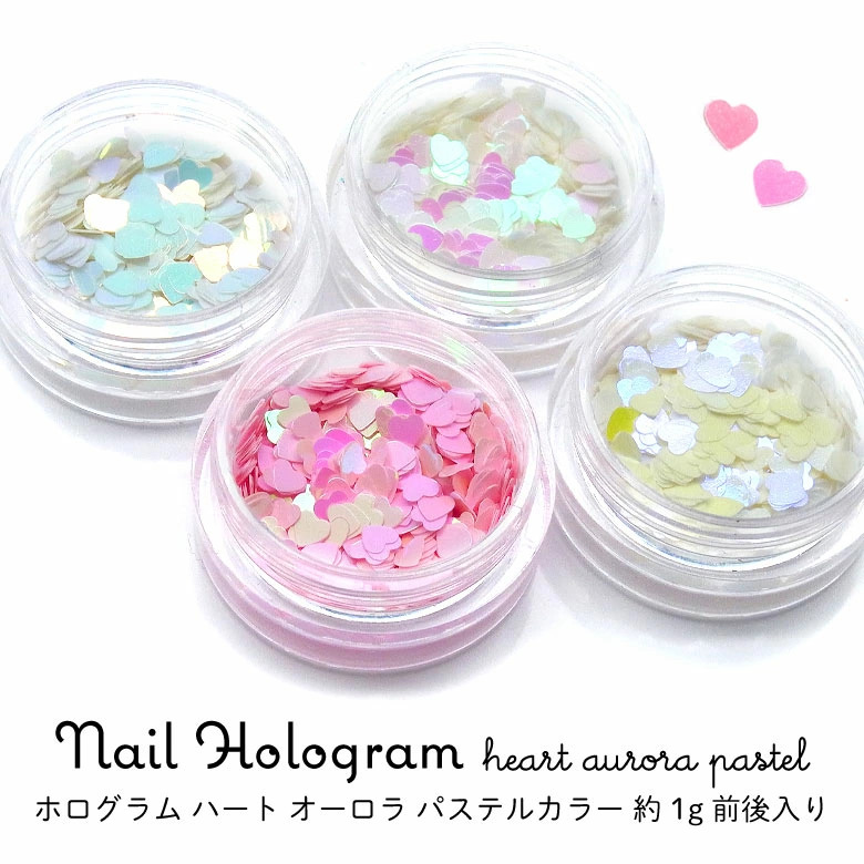 ネイル ホログラム ハート オーロラ パステル カラー 約1g前後 ケース入り