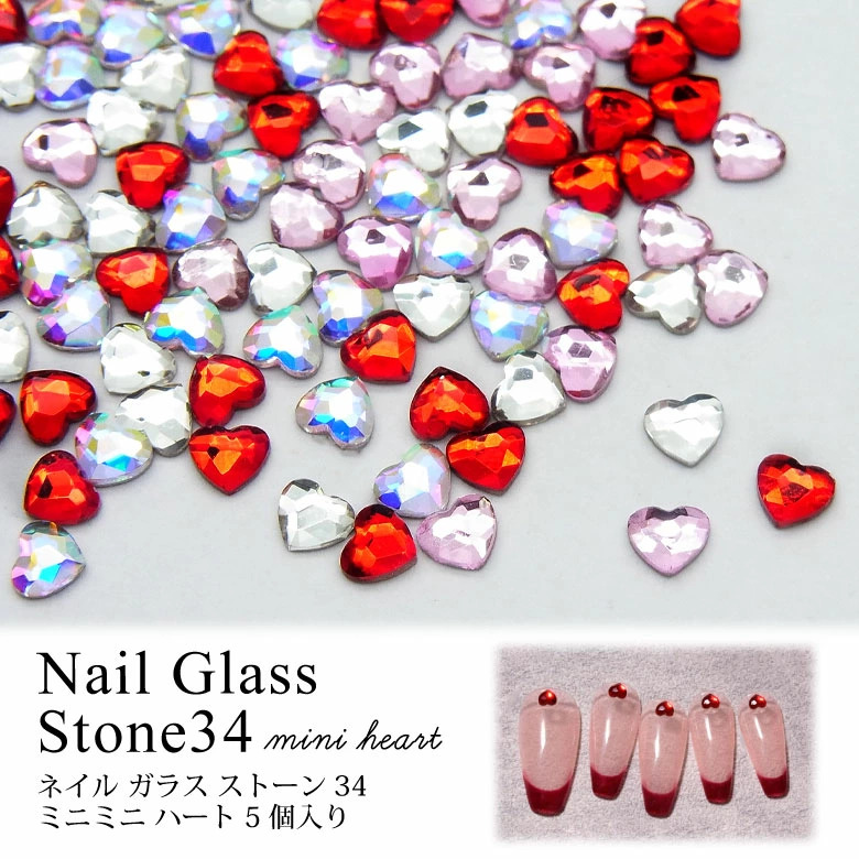 ネイル ガラス ストーン 34 ミニミニ ハート 5個入り