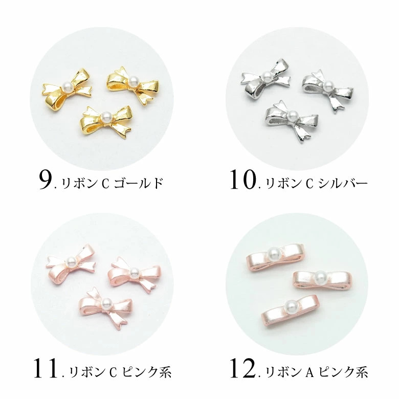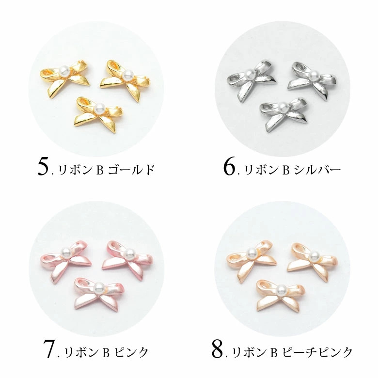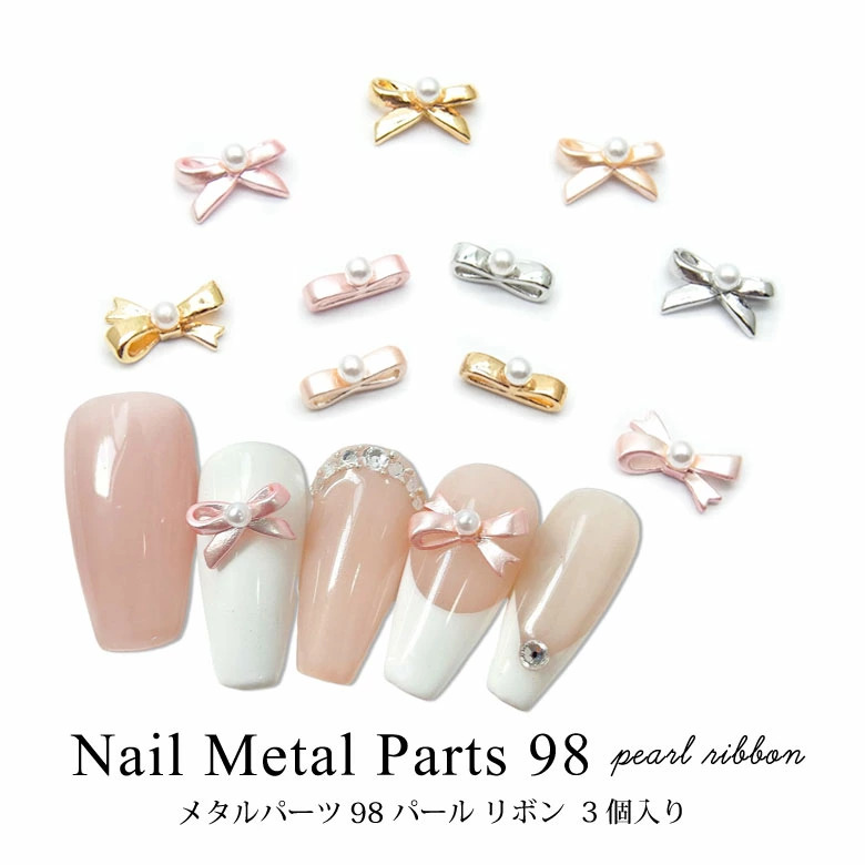 ネイル メタル パーツ パール リボン 3個入り 98