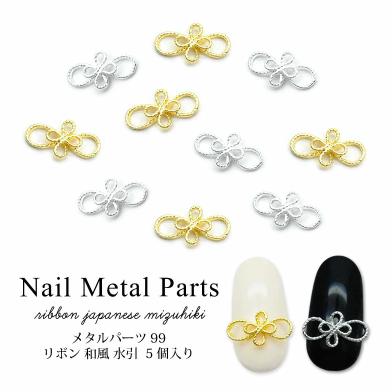 ネイル メタルパーツ リボン 和風 水引 5個入り 99