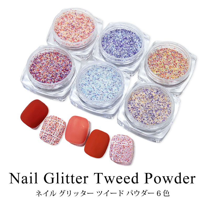 ネイル グリッター ツイード パウダー ケース入り 全6色