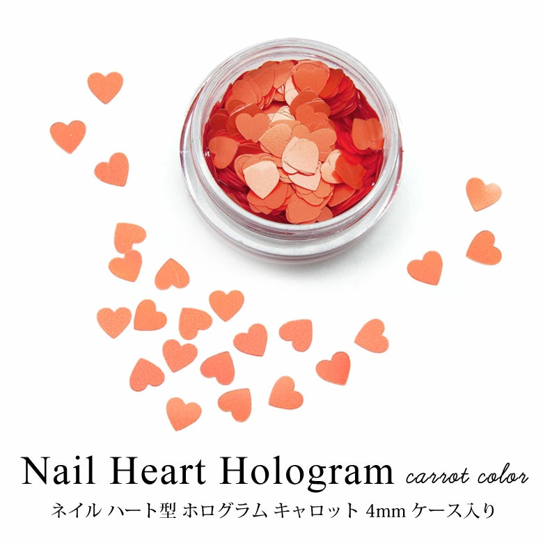 ネイル ハート型 ホログラム 限定カラー キャロット 4mm 約1g前後 ケース入り