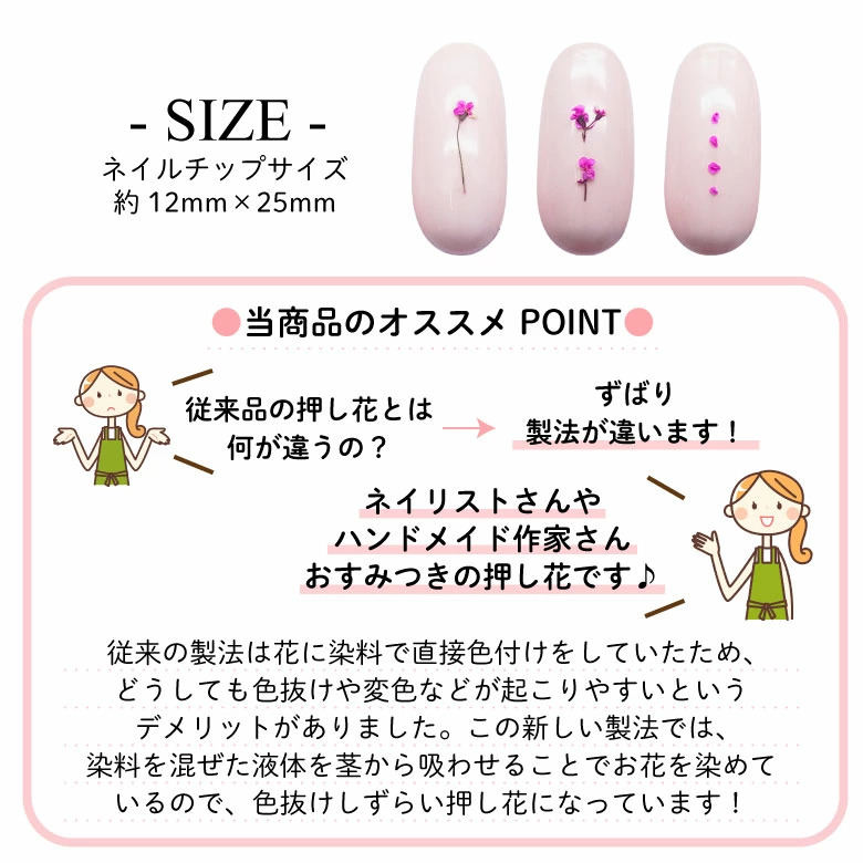 ネイリストさんやハンドメイド作家さんおすみつきの押し花です。