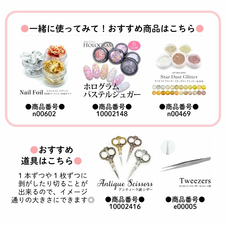 ネイルのワンポイントはもちろん、アクセサリー制作やレジン等の封入素材としても使えます◎
