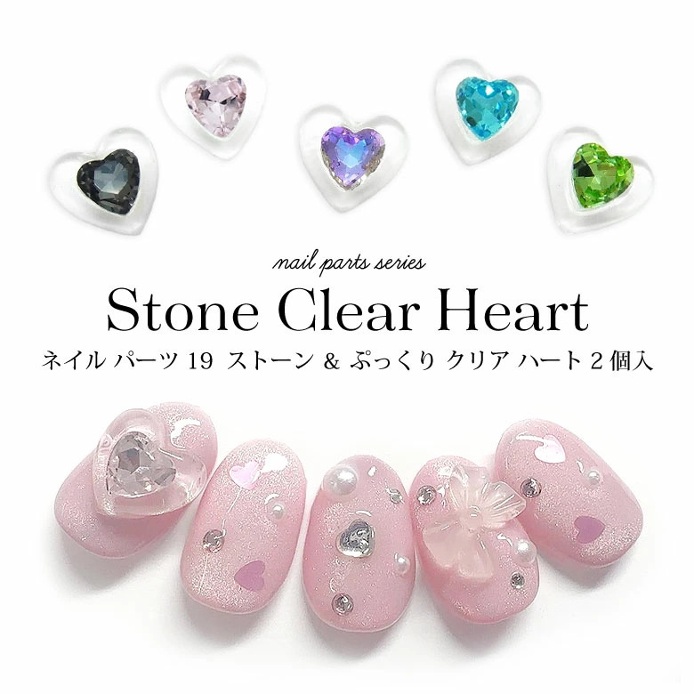 ネイル パーツ ストーン & ぷっくり クリア ハート 2個入り 19
