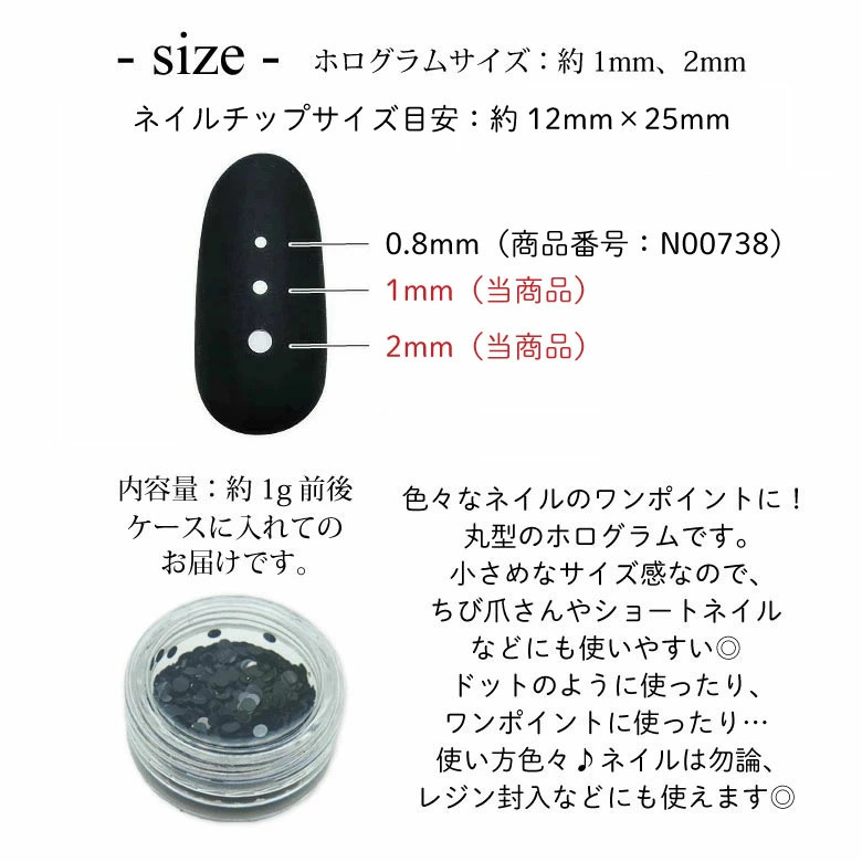 ネイル ホログラム 丸 ラウンド 1mm 2mm ケース入り