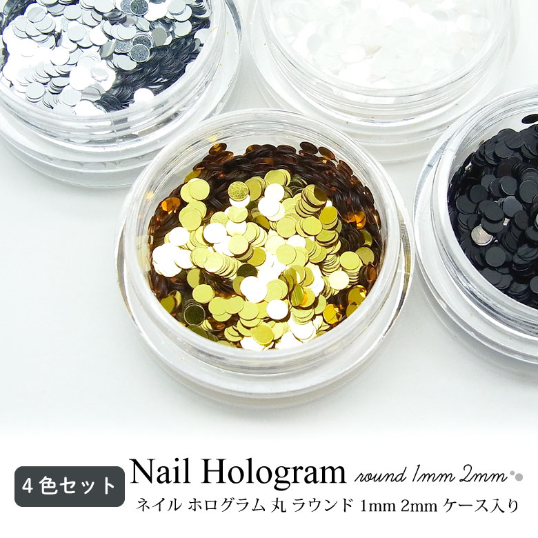 ネイル ホログラム 丸 ラウンド 1mm 2mm ケース入り【4色セット】