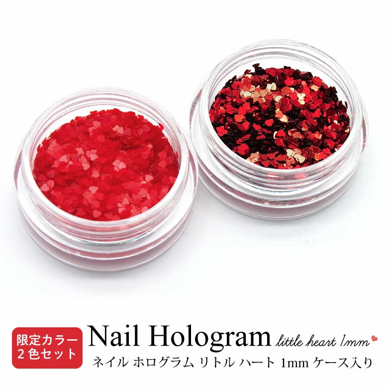 【限定カラー レッド 2色セット】ネイル ホログラム リトル ハート 1mm ケース入り