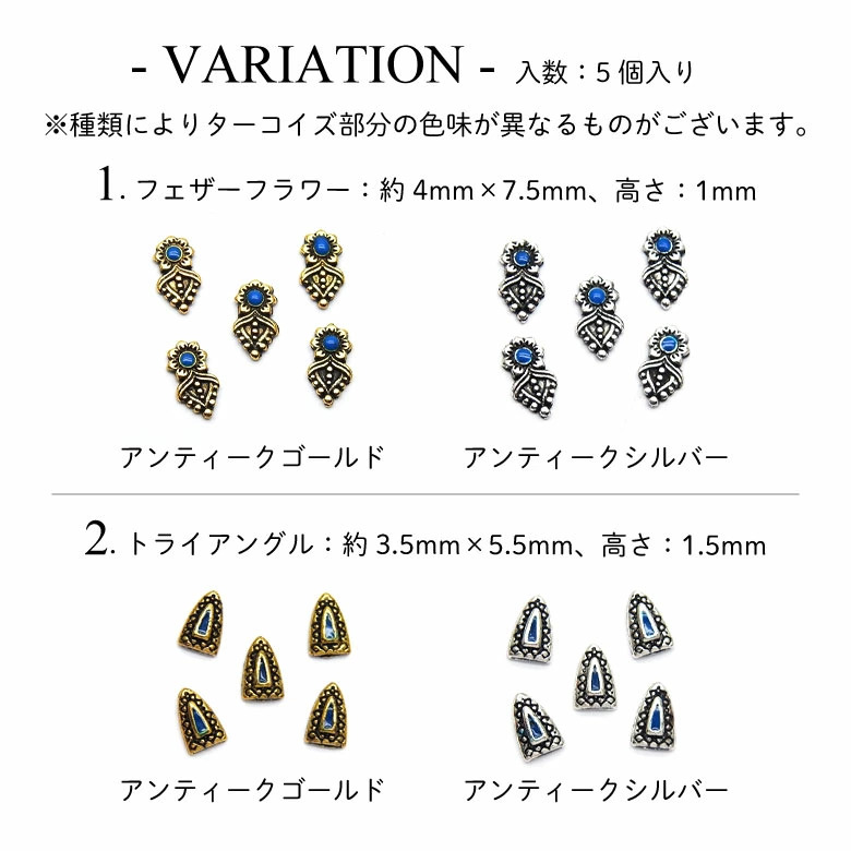 1.フェザー フラワー:約4mm×7.5mm、高さ:1mm