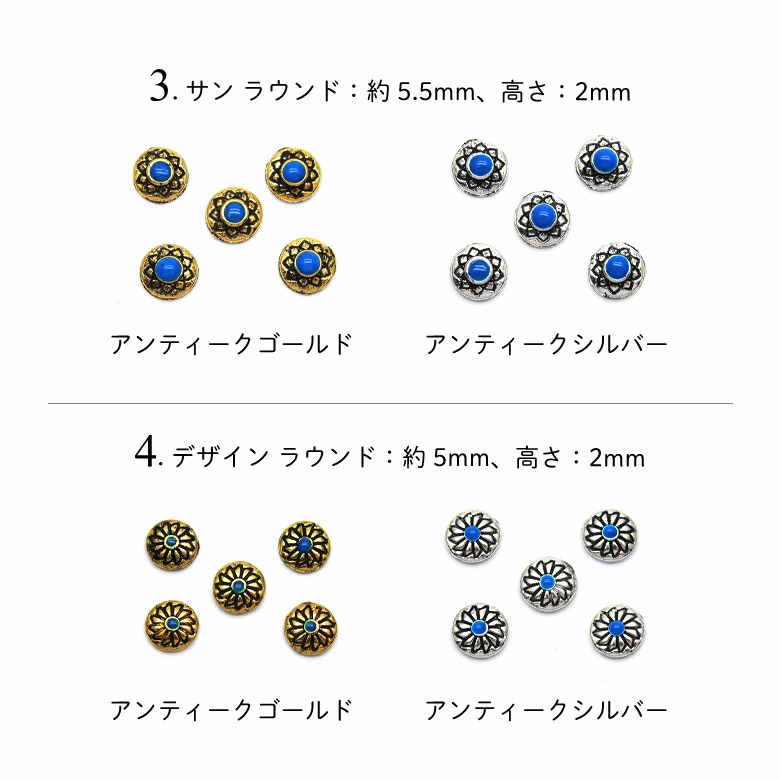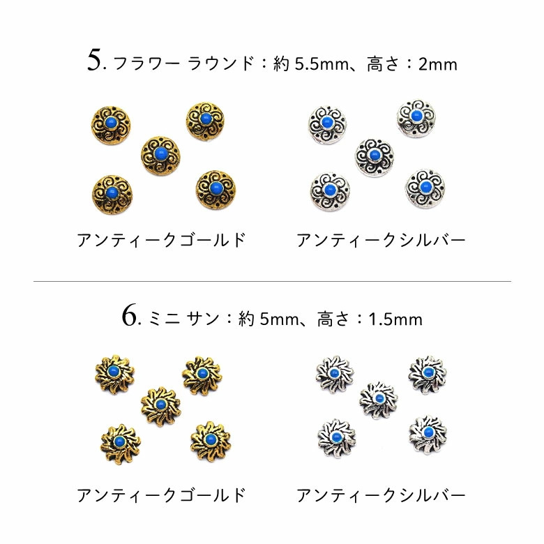 5.フラワー ラウンド:約5.5mm、高さ:2mm