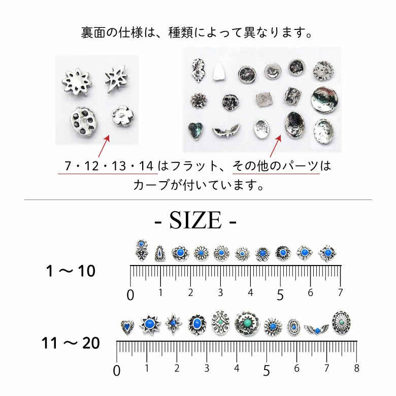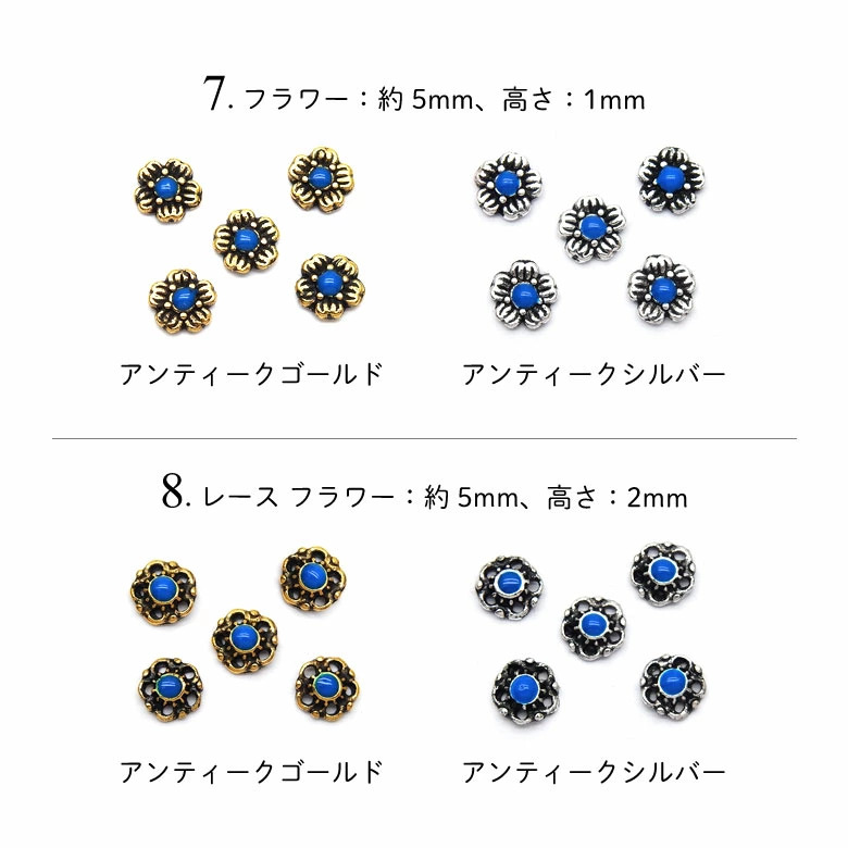 7.フラワー:約5mm、高さ:1mm
