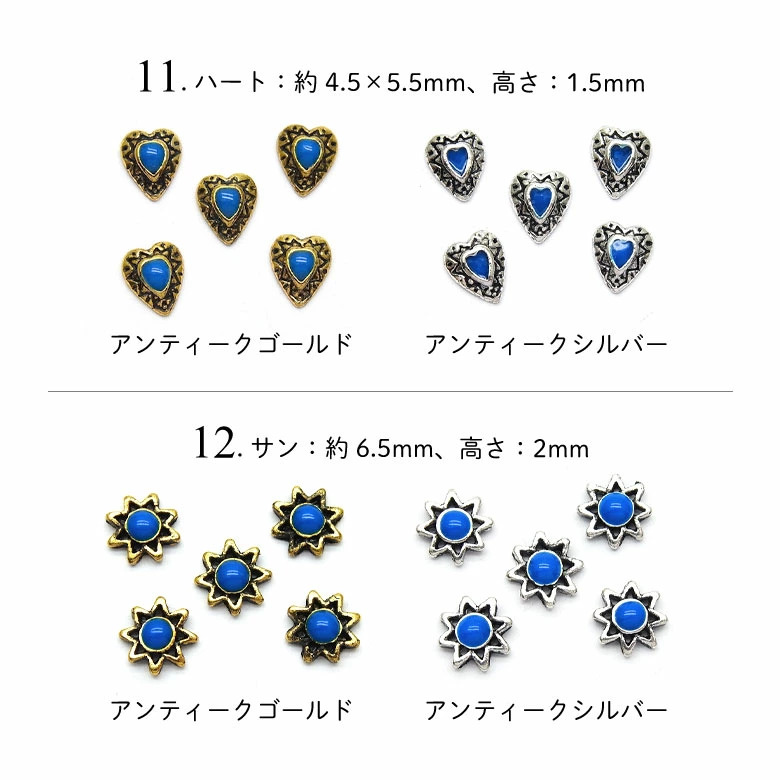 11.ハート:約4.5×5.5mm、高さ:1.5mm