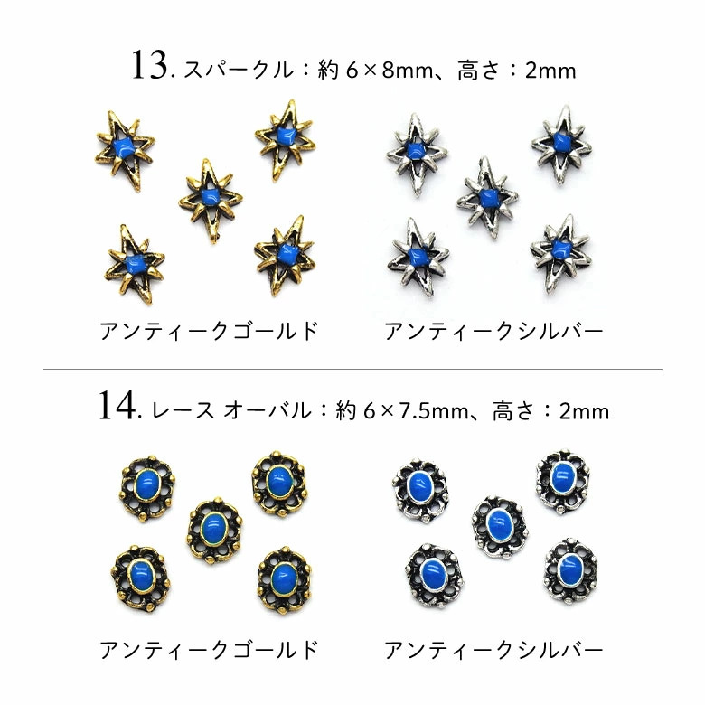 13.スパークル:約6×8mm、高さ:2mm