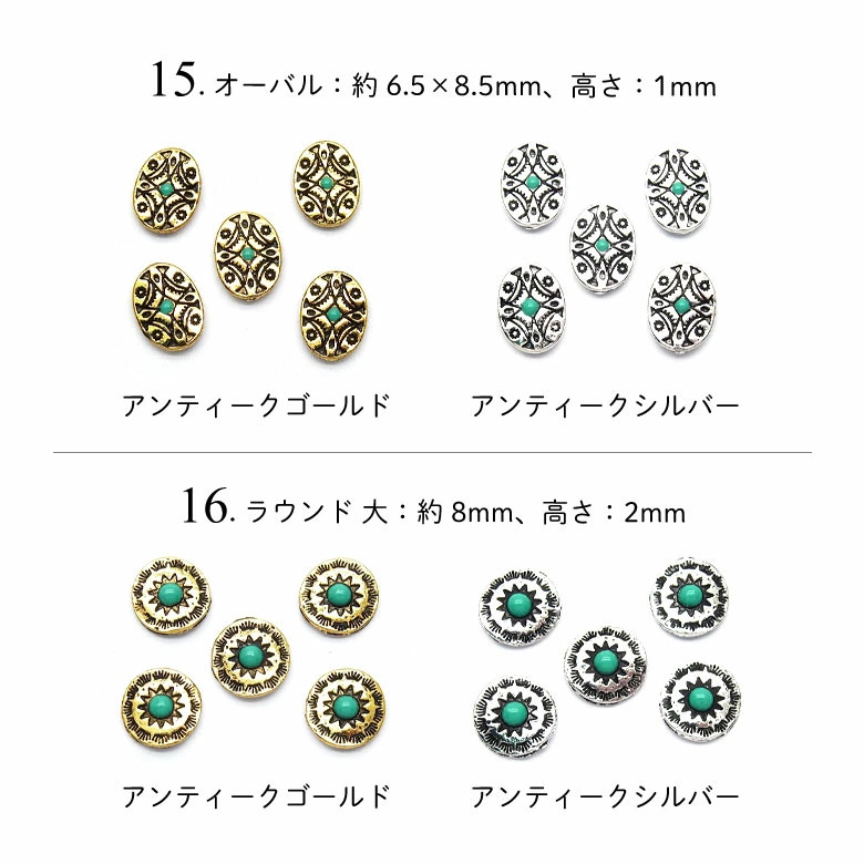 15.オーバル:約6.5×8.5mm、高さ:1mm