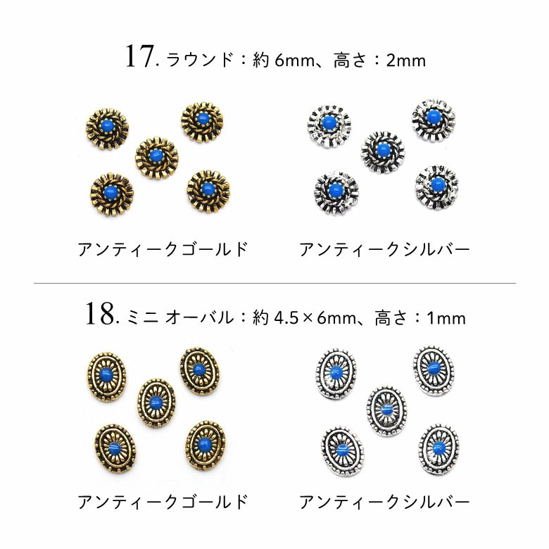 18. ミニ オーバル:約4.5×6mm、高さ:1mm