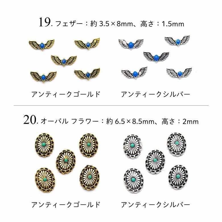 19.フェザー シルバー:約3.5×8mm、高さ:1.5mm