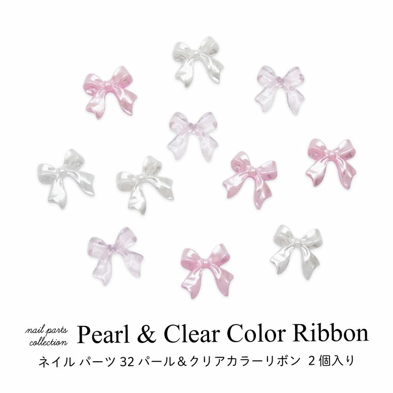 ネイル パーツ パール & クリア カラー リボン 2個入り 32
