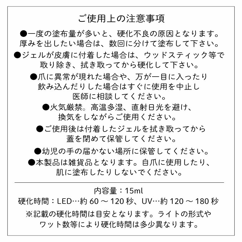 ※本製品は雑貨品となります。自爪に使用したり、肌に塗布したりしないでください。