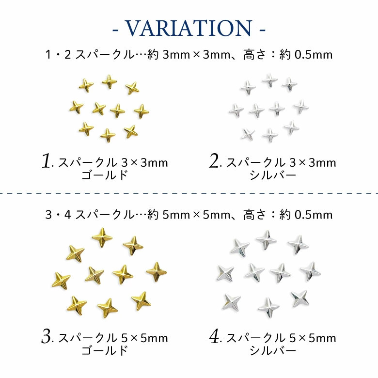 3・4スパークル…約5mm×5mm、高さ:約0.5mm